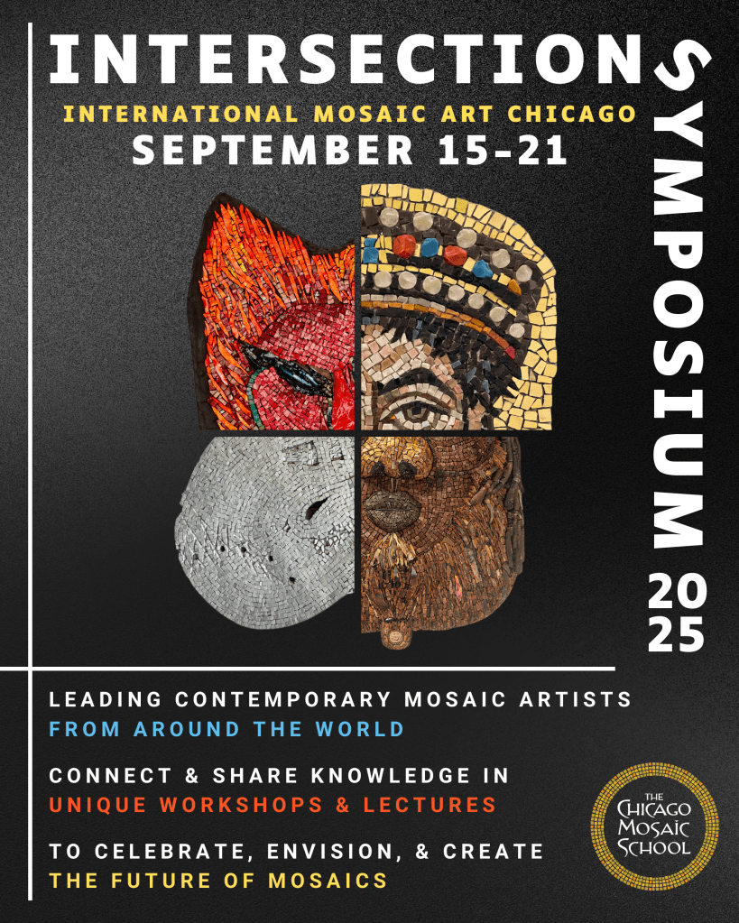 A promotional social media graphic / poster developed for the Chicago Mosaic School’s first international mosaic symposium.